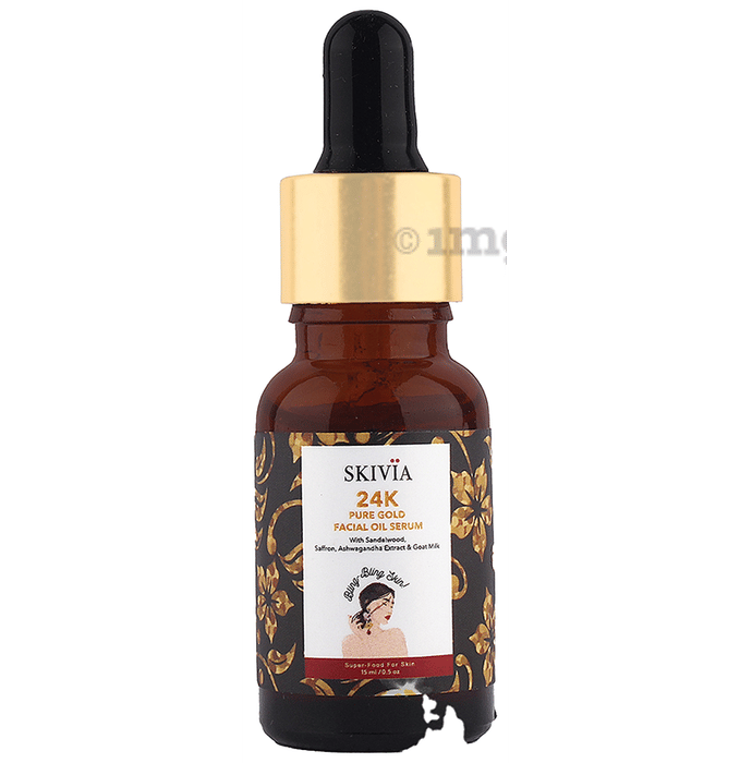 Skivia 24K Pure Gold Facial Oil Serum comprises anti-inflammatory properties, antibacterial agents, anti-aging agents, and antioxidants. This facial oil serum helps make the face more radiant, smooth, silky, and clean while also supporting the skins brightness and texture. It is enhanced with goat milk, ashwagandha extract, sandalwood, saffron, and 24K pure gold. There are no harmful chemicals, parabens, or sulphates in it