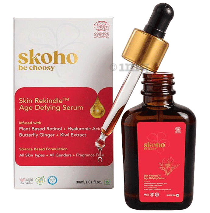 Skoho Skin Rekindle Age Defying Serum is a scientifically formulated blend infused with plant-based retinol, hyaluronic acid, butterfly ginger, and kiwi extract. This serum, suitable for all skin types and genders, may help support youthful, radiant skin. The carefully selected natural ingredients may help provide hydration and protection against environmental stressors. It is organic, vegan, GMO-free, and fragrance-free, making it an ideal choice for those looking for an eco-conscious skincare product. Skoho Skin Rekindle™ Age Defying Serum may work effectively day and night to help you maintain glowing and healthy skin.