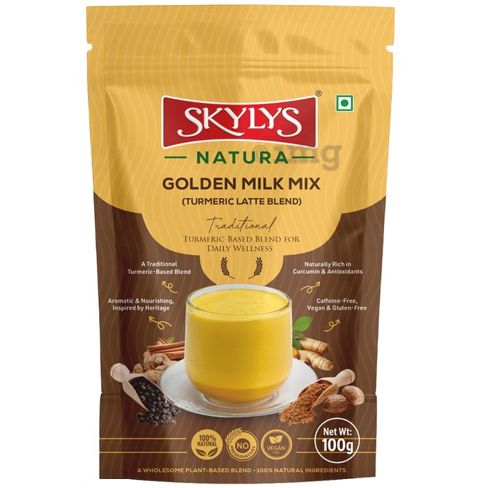 Skylys Natura Golden Milk Mix Powder is a nourishing blend of wellness spices crafted to help support joint comfort, immunity, and relaxation. Made with Lakadong Turmeric, a potent source of curcumin, along with dry ginger, black pepper, cinnamon, and nutmeg, this mix offers a soothing and warming beverage experience with potential health-supporting benefits. Fortified with natural sources of calcium and iron, it is ideal for those looking to incorporate Ayurvedic goodness into their modern wellness routine.