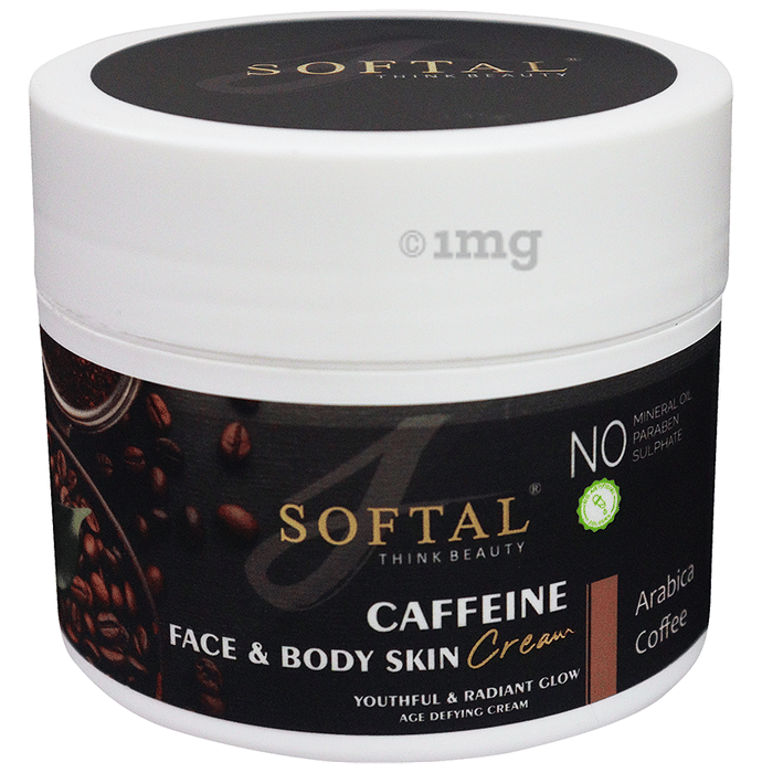Softal Caffeine Face & Body Skin Cream is a coffee-infused nourishing cream to quench the skin’s thirst. It gives you a daily dose of hydration along with the goodness of pure arabica coffee. Coffee is rich in caffeine packed with antioxidants that smooth and soothe the skin from roughness and dirt. It polishes skin and regulates blood flow to improve collagen production for youthful and glowing skin.