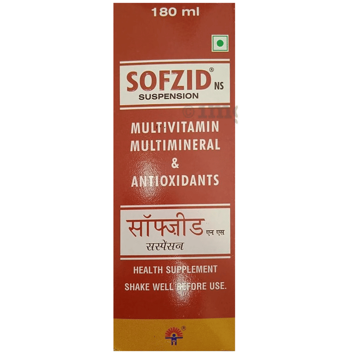 Sofzid NS Syrup is a multivitamin, multimineral and antioxidant rich syrup that helps prevent nutritional deficiencies and enhance overall health of the body. This suspension helps reduce oxidative stress and maintain healthy skin, and nourishment. It is also an excellent antioxidant which helps protect from free radicals damage and supports immunity.
