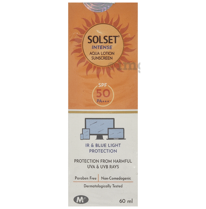 Solset Intense Sunscreen Lotion SPF 50 PA+++is a powerful sunblock that protects the skin from UV damage. It reduces sunburn and blemishes on the skin. It provides blue light protection as well. This formula is non-comedogenic and paraben-free.
