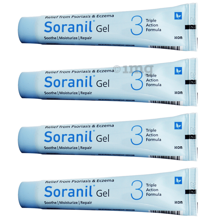 Soranil Gel reduces the inflammation of the skin and itching associated with Psoriasis. It facilitates the shedding of dead skin cells, thereby decreasing the accumulation of silvery flakes/scales on the skin at the region of lesions. It provides long-lasting remission and does not cause any serious adverse effects. The gel contains a formula that speeds up the healing process by acting as a blood purifier. The antioxidants help restore skin texture (smoothening cracked, painful epidermis).