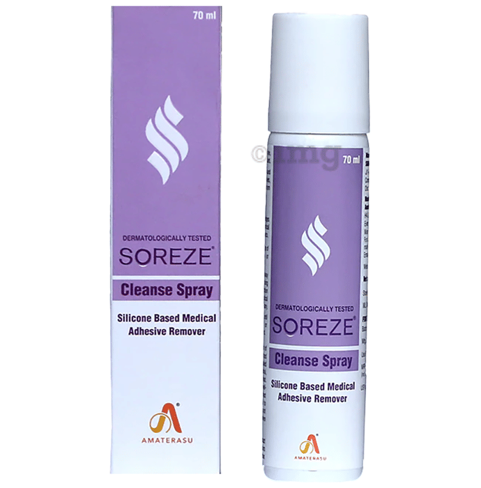 Soreze Cleanse Spray (70ml Each) is a silicone-based adhesive remover spray formulated to gently and effectively remove adhesives, dressings, and ostomy devices from the skin. It provides a smooth, sting-free experience without discomfort, making it suitable for sensitive areas. Unlike alcohol-based removers, it is free from alcohol, colour, fragrance, and preservatives, ensuring a gentle and skin-friendly application. It also helps clean adhesive residue without irritating or drying the skin.