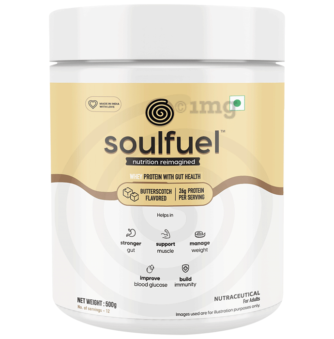 SoulFuel Nutrition Reimagined Whey Protein with Gut Health Powder Butterscotch is a nutraceutical supplement designed to help support overall well-being. Formulated with whey protein and gut-friendly ingredients, it may help strengthen the gut, support muscle recovery, and assist in weight management. This product can be ideal for individuals seeking to help maintain energy levels, promote metabolic balance, and improve overall health.