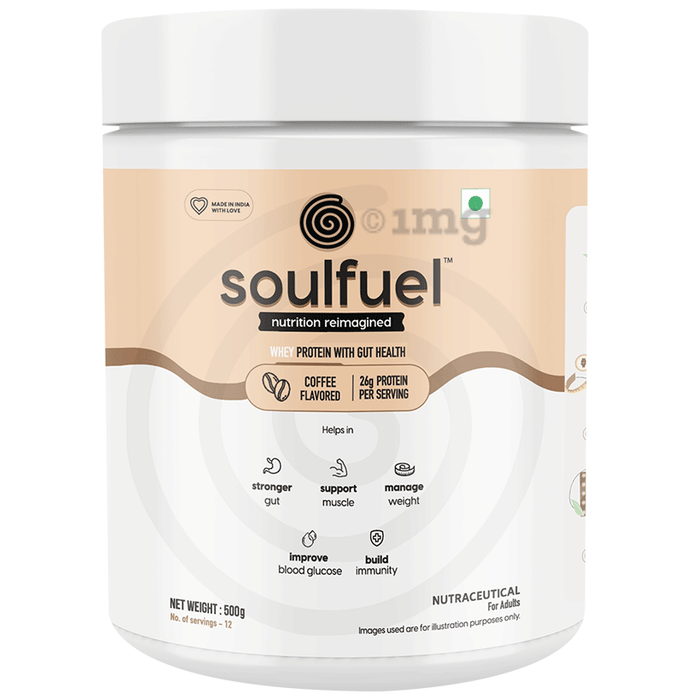 SoulFuel Nutrition Reimagined Whey Protein with Gut Health Powder Coffee is a nutraceutical supplement designed to help support overall well-being. Formulated with whey protein and gut-friendly ingredients, it may help strengthen the gut, support muscle recovery, and assist in weight management. This product can be ideal for individuals seeking to help maintain energy levels, promote metabolic balance, and improve overall health.