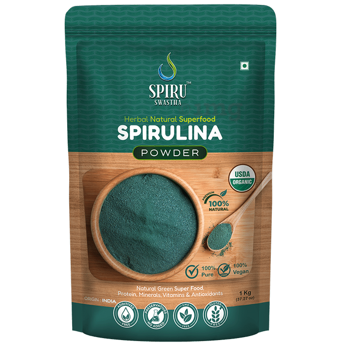 Spiru Swastha Spirulina Powder is made using pure Spirulina powder, a natural source of plant-based protein, vitamins, and minerals. It may help support nutritional needs as part of a balanced daily diet. The powder contains no additives, gluten, or preservatives, and is suitable for those seeking a vegan and clean supplement option.