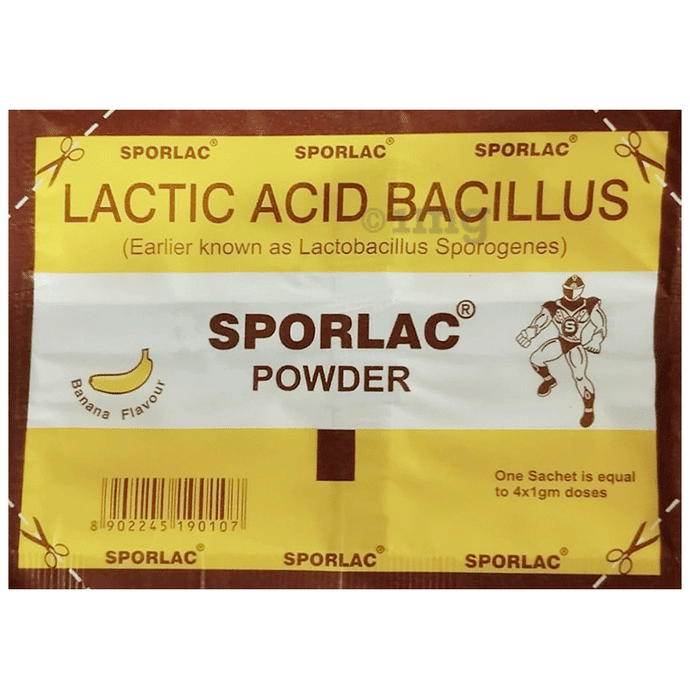 Sporlac Sachet Banana is a tablet-based form of powder offered by sanzyme. This product is particularly beneficial for young children and is a lactic acid bacillus tablet. Lactic acid bacillus is a natural probiotic that works to restore a healthy flow of gut bacteria in the digestive tract. This improves how foods are to be digested and will improve any form of discomfort within the body. This can also control diarrhoea and other issues that might develop within the gut. These include problems that might have been caused by a lack of development or even the use of antibiotics.