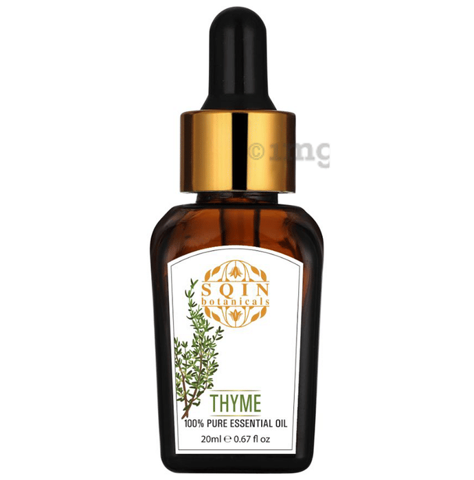 Sqin Botanicals 100% Pure Essential Oil Thyme is used for circulation, digestion and secretion of hormones. It is beneficial in coughs and also heals the infections in the chest. It is used as a germ-killer in liniments and mouthwashes. It is used to treat scalp baldness and fights bacteria and fungal infections. It has antioxidant effects.