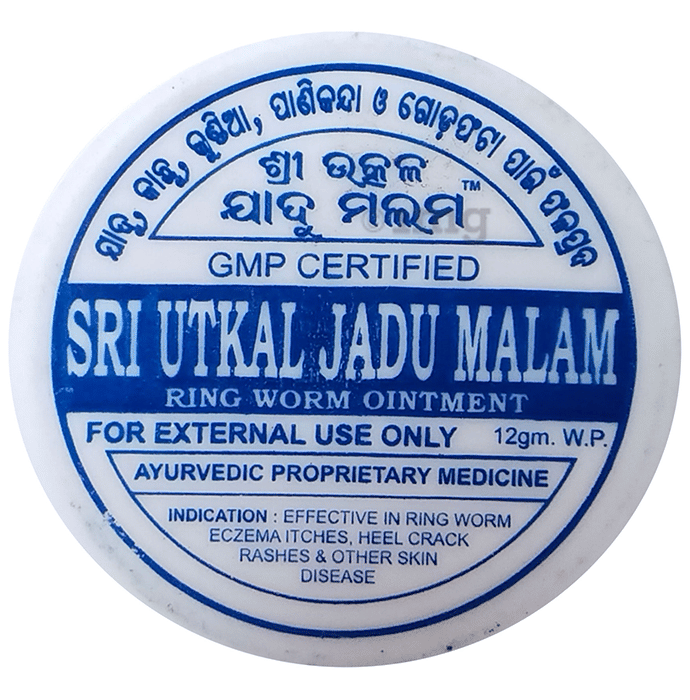Sri Utkal Jadu Malam RingWorm Ointment is an Ayurvedic proprietary medicine that comes in a balm form and aids in healing ringworms infestation. It is also effective in eczema and other skin diseases.