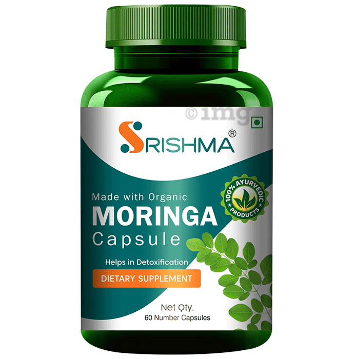Srishma Moringa Capsule: Srishma Moringa Capsule is a premium dietary supplement made from organic Moringa Oleifera, known as a powerful superfood. Packed with essential vitamins, minerals, and antioxidants, Moringa is a natural energy supporter and helps detoxify the body. Its rich nutritional profile supports overall health, supports the immune system, and nourishes the body and mind. The capsule offers a convenient way to incorporate the health benefits of Moringa into daily life, promoting vitality and wellness. This plant-based supplement is free from preservatives and fillers, making it a great addition to a balanced diet. Key Ingredients: Moringa Extract (Moringa Oleifera): 500 mg Key Benefits: