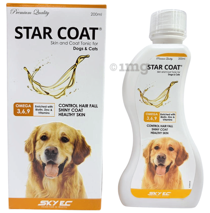 Star Coat Pet Tonic is a premium dietary supplement specially formulated to promote healthy skin and a shiny coat in pets. Enriched with a potent blend of essential nutrients, including Omega 3, 6, and 9 fatty acids, vitamins A, D3, and E, zinc, and biotin, this tonic provides comprehensive support for your pet's skin and coat health.