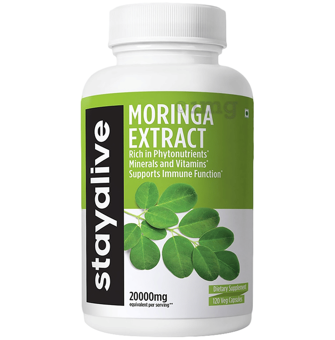 Stayalive Moringa Extract Veg Capsule provides a convenient way to explore the potential benefits of Moringa Oleifera, a botanical known for its rich nutrient profile and traditional uses. Packed with phytonutrients, vitamins, and minerals, these capsules may help support immune health and promote overall vitality. Ideal for daily wellness routines.