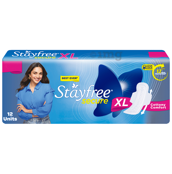 Stayfree Secure Cottony Soft with Wings XL Pad is designed to ensure long lasting protection and comfort during periods for up to 12 hours and includes wings that prevent it from shifting. It also has a Super Absorb Design that absorbs excess leakage and keeps you dry. It also has an Odour Control System that prevents the emanation of malodours and keeps you feeling fresh and comfortable.
