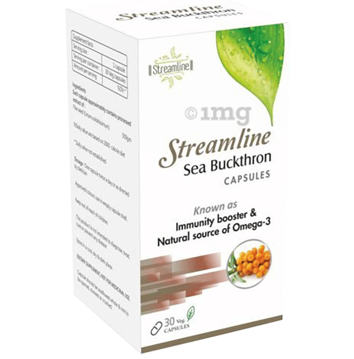 Streamline Sea Buckthron Veg Capsule is a dietary supplement which offers a wide range of health benefits. It is a natural source of vitamins, anti-oxidant, omega 3 & omega-7 fatty acids. It helps to maintain heart health, skin health and helps to maintain healthy cholesterol levels. Sea buckthorn helps protect your body against infections and helps to boost your immunity. It is naturally full of antioxidants, which help protect your body against ageing and other problems. They also contain good amounts of folate, biotin and vitamin B1, B2, B6, C and E