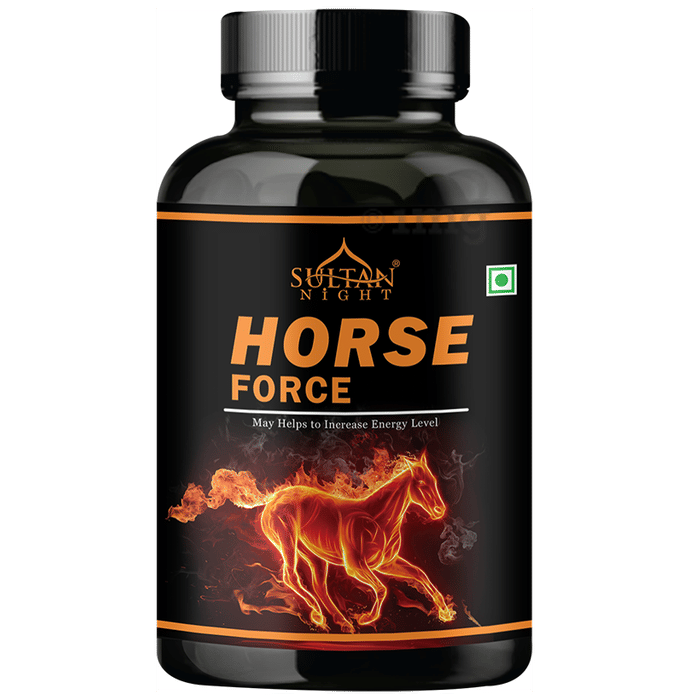 Sultan Night Horse Force Capsule (30 Each) is a herbomineral supplement made with Swarna Bhasma, Kaunch Beej, Safed Musli, and Ashwagandha, along with other botanicals such as Shatavari, Akarkara, and Tulsi. This capsule is structured to complement daily routines that can help focus on strength, endurance, and vitality. The blend features ingredients used in Ayurvedic formulations to support daily physical readiness and recovery schedules.