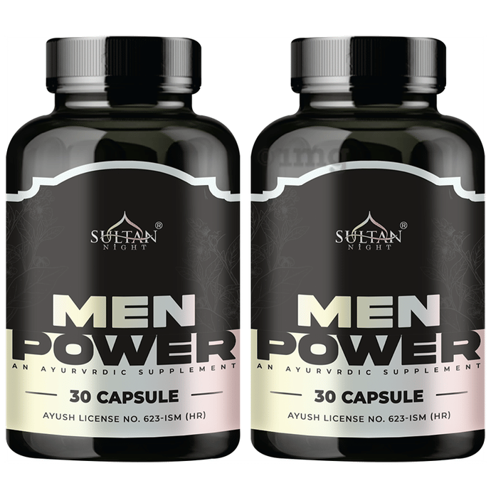 Sultan Night Men Power Capsule (30 Each) is an Ayurvedic supplement with a blend of botanical extracts and mineral preparations commonly used in adult men’s wellness regimens. The ingredients such as Ashwagandha, Kaunch Beej, Shilajit, and Safed Musli are included to support physical stamina and vitality. The formulation also contains minerals like Swarna Bhasma and Abhrak Bhasma, combined with herbs like Akarkara, Shatavari, and Tulsi. It is intended for structured use in energy-focused supplementation plans.