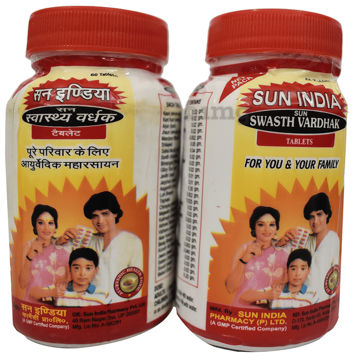 Sun India Swasth Vardhak Tablet (60 Each) is a dietary supplement that helps enhance immunity and enhances overall well-being in men and women. It also maintains fitness and aids in weight management.