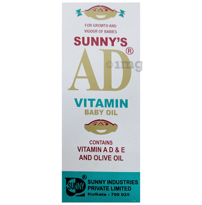 Sunny's AD Vitamin Baby Oil is a baby oil with vitamin A, D, E and olive oil that promotes the growth and vigour of babies. It does not contain harsh chemicals and is safe for babies and children.