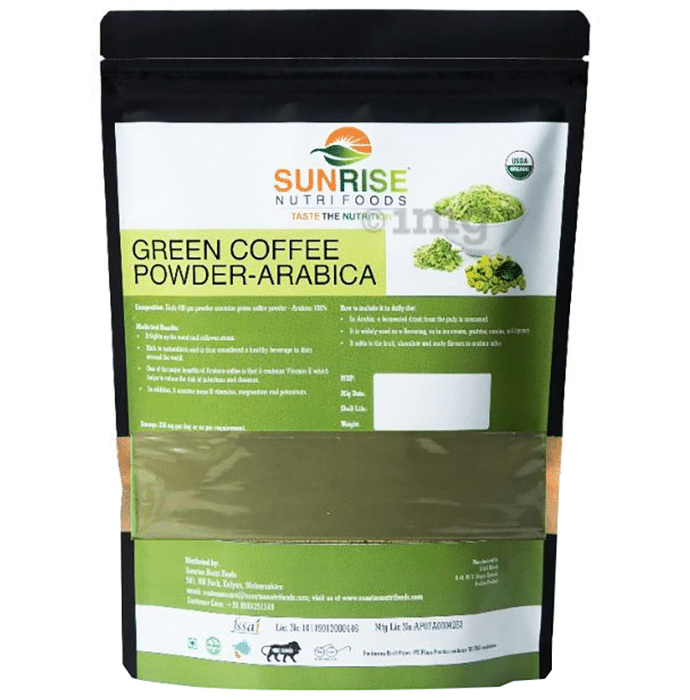 Sunrise Nutri Foods Green Coffee Powder Arabica is an organic and US-DA certified product. It is widely used for weight loss. Besides, it contains caffeine, which improves mood and reduces stress levels. Sunrise Nutri Foods Green Coffee is also loaded with antioxidants.