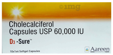 Surge-D3 tablet contains Cholecalciferol 60,000 iu (International units). Cholecalciferol (Vitamin D3) which is a fat soluble vitamin, that helps the body to absorb calcium and phosphorous found in food and supplements.