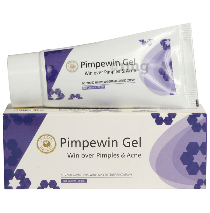 Surya Herbal Pimpewin Gel (30gm Each) is a herbal solution which helps in controlling the problem of pimples and acne on the face. Manufactured by Surya Herbal Limited, India - ISO 22000, ISO 9001:2015, EU certified, WHO-GMP and Ayush Premium Marked product.