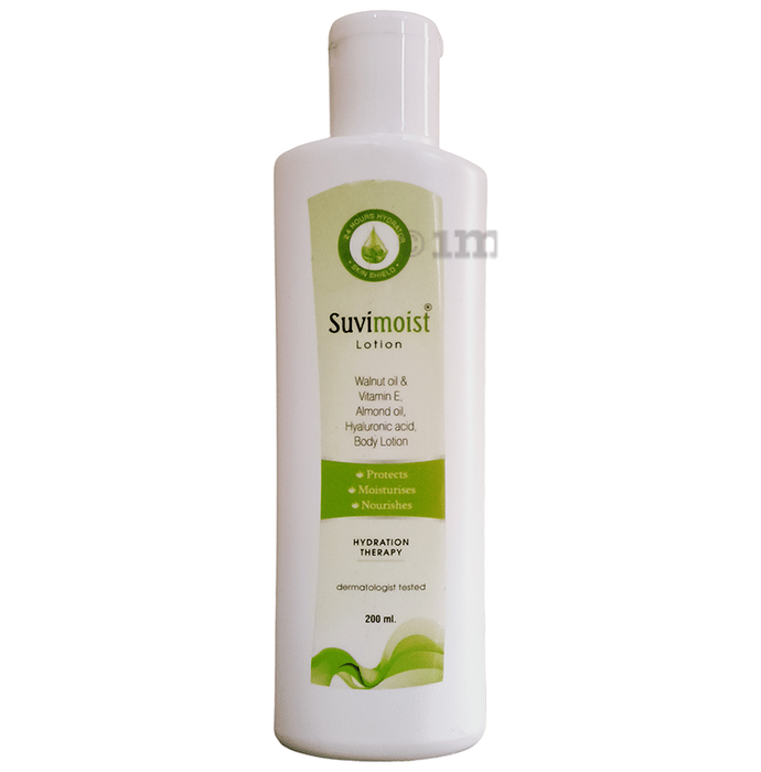 Suvimoist Lotion is a lightweight moisturizer that supports the skin's natural protein. It is ideal for all skin types, this 24-hour hydration skin shield is a two-minute hydrator enriched with vitamin D and omega 3, 6, and 9. Free from mineral oil and parabens, it offers a nourishing blend that pampers your skin with walnut oil, vitamin E, almond oil, hyaluronic acid, niacinamide, shea butter, and more.