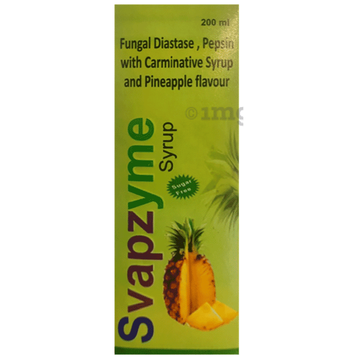 Svapzyme Syrup is a dietary supplement with fungal diastase and pepsin with carminative syrup. The digestive syrup helps to manage digestive disorders and promotes detoxification. It helps stimulate appetite and deals with acid indigestion, flatulence, epigastric distress and eructation. It helps in the breakdown of food into simpler compounds, thereby supporting the digestion process. It promotes digestion, eliminates toxins and improves appetite.