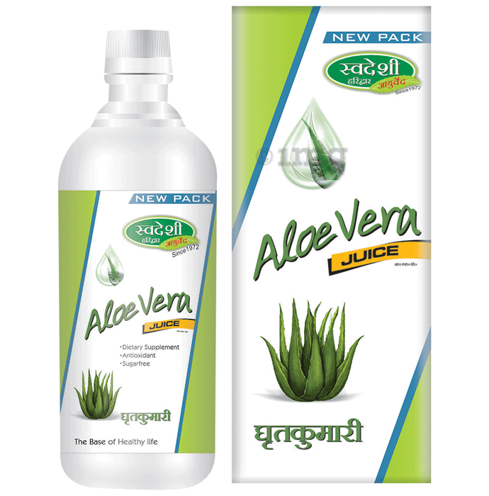 Swadeshi Aloevera Juice contains aloe vera juice known for its general health and wellness properties. It supports digestion and contributes to skin and hair care. It is also used as a supplement in a balanced diet.