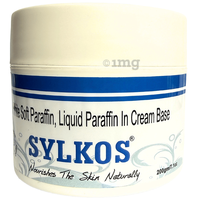 Sylkos Cream is a topical skin-conditioning formulation designed to support skin hydration and surface protection as part of routine skincare. It contains white soft paraffin and liquid paraffin, which function as occlusive emollients that help maintain moisture balance by forming a protective layer on the skin surface. The formulation also includes aloe vera–based cream components along with emulsifiers and stabilising agents that support smooth application and even spreadability. Supporting ingredients such as isopropyl myristate and cetostearyl alcohol contribute to skin-conditioning effects, helping maintain softness and suppleness. The cream is described as sulphate free, non-comedogenic, and paraben free, making it suitable for regular external application as directed. It is intended for topical use only as part of daily skincare maintenance.