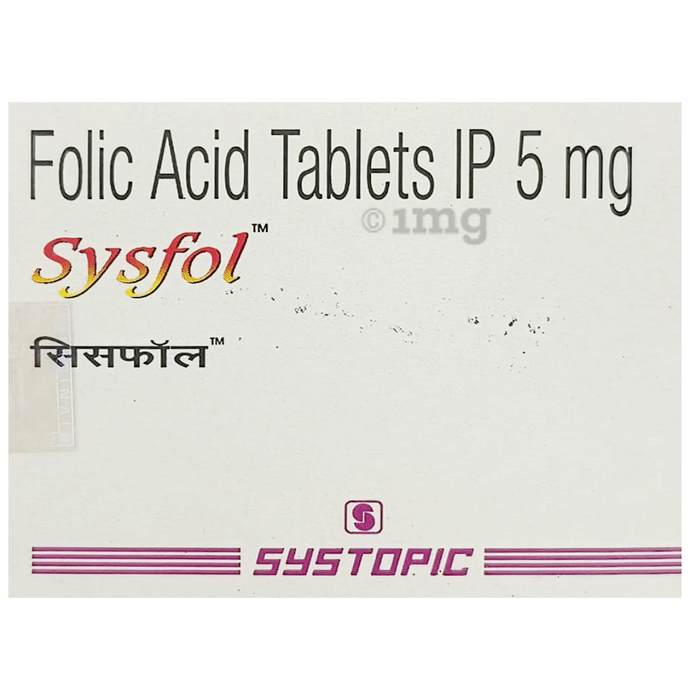 Sysfol 5mg Tablet is a health supplement for adult women containing folic acid that is essential for rapid cell division and growth. It helps in the formation of haemoglobin that transports oxygen from the lungs to the whole body.