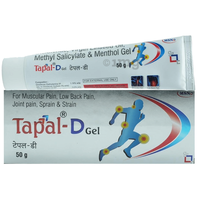 Tapal D gel (applied to the skin) is used to relieve pain associated with recent muscle or joint injuries such as sprains, strains, or sports injuries. It also relieves pain from rheumatoid arthritis, osteoarthritis etc.