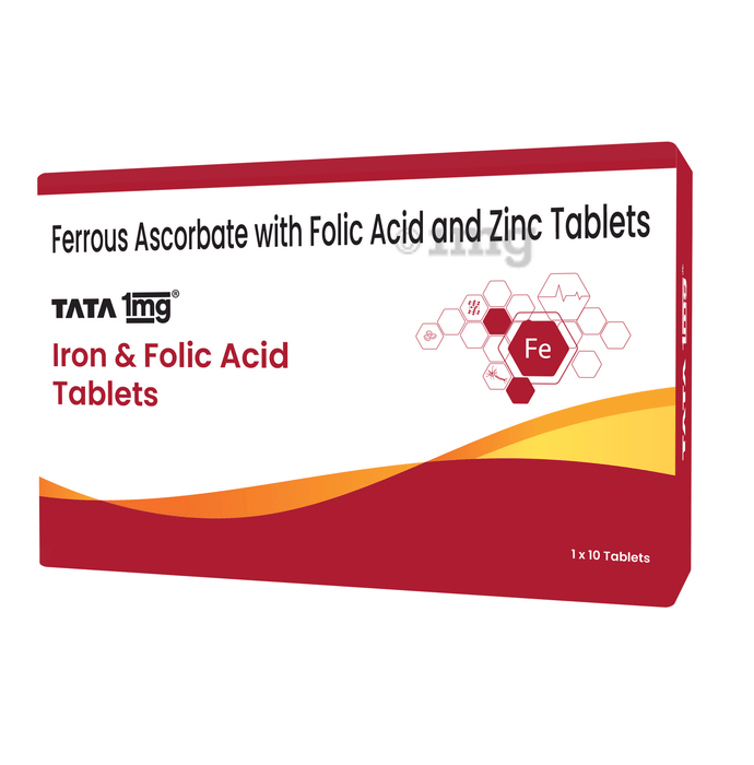 TATA 1mg Iron & Folic Acid Tablets are formulated to help address iron and folic acid deficiency, improve hemoglobin levels, and support daily energy and wellness, especially in women, adolescents, and pregnant individuals.β
