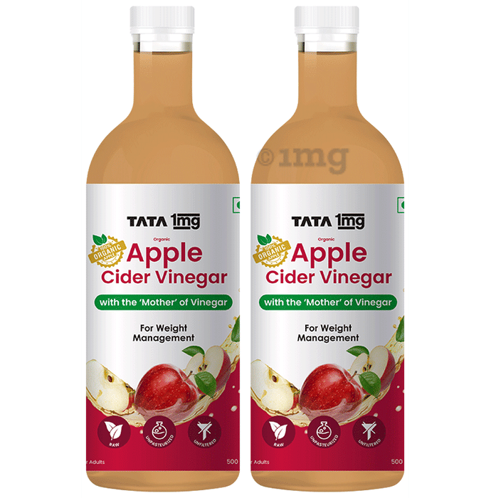 Organic Apple Cider Vinegar (500ml Each) ACV with “Mother of Vinegar” / Healthy Weight & Wellbeing / by Tata 1mg is raw, unfiltered, and unpasteurised, containing the ‘Mother’ of vinegar. It contains a blend of organically fermented apple juice with 5% acetic acid. This unfiltered vinegar contains the 'Mother'—a mix of proteins, enzymes, and friendly bacteria—which can help support digestion and gut health. It is suitable for use as a daily morning drink or as a flavourful salad dressing. It provides a natural option for those looking to support weight and wellbeing as part of a healthy lifestyle.