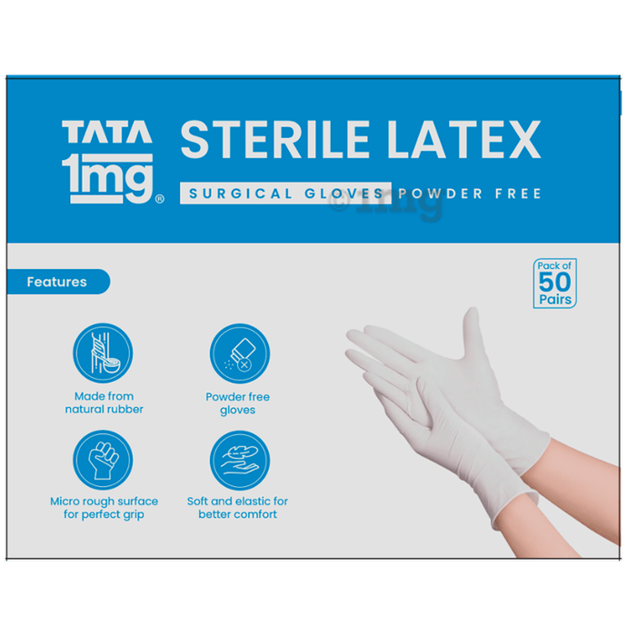 Tata 1mg Sterile Latex Surgical Gloves Powder Free is of medical-grade quality and designed for various examination purposes. These gloves are powder free, making them suitable for extended wear. They find applications across a range of settings including hospitals, laboratories, industries, and homes. Gloves are equipped with beaded cuffs for easy wearing and removal. Additionally, they provide a smooth texture and a secure grip for enhanced functionality. The gloves are not intended for sterile use.
