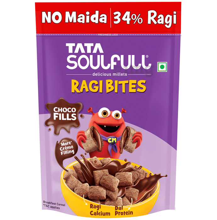 - Tata Soulfull Ragi Bites Choco Fills is high in calcium and fibre