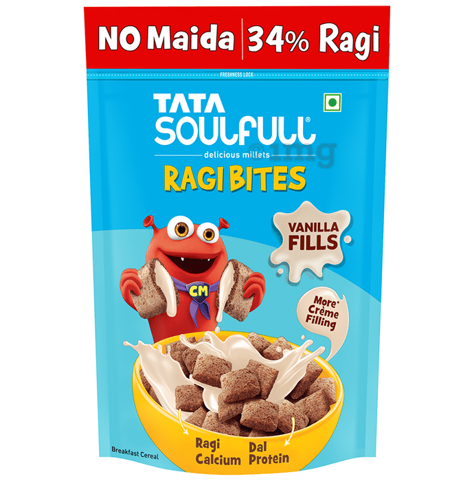 - Tata Soulfull Ragi Bites Vanilla Fills is high in calcium