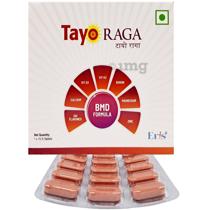 Tayo Raga Tablet is a powerful bone health supplement designed to help provide comprehensive support for optimal bone strength and structure. Each tablet contains essential minerals such as Calcium, Magnesium, Zinc, and Boron, along with Vitamin D3 and K2 to promote better calcium absorption. Additionally, Soy Isoflavones support overall bone density and hormonal balance. Ideal for adults looking to maintain or enhance bone health, Tayo RAGA delivers a balanced nutritional profile to ensure strong bones and joints.