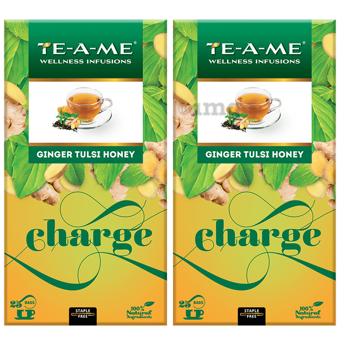 TE-A-ME Charge Ginger Tulsi Honey Unleash the power of Tulsi (Holy Basil), revered for over 5000 years. The phytonutrients and antioxidants in tulsi dry leaves enhance immunity, metabolism, and overall well-being in this herbal tea without caffeine. It can help alleviate common cold and cough symptoms, and joint pains, and support healthy ageing with the holistic benefits of this non-caffeine tea infusion.