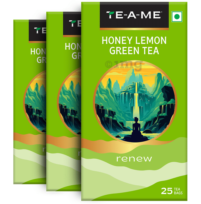 TE-A-ME Renew Honey Lemon Green Tea Bags (25 Each) Embrace the approach to wellness with TE-A-ME Renew Honey Lemon - Green Tea, a testament to vitality. The blend, featuring 25 pieces of green tea blends- lemon and honey(natural flavour), serves as a gateway to your weight loss goals and a healthy lifestyle. Experience the benefits of green tea for weight loss as you embark on a journey towards well-being.