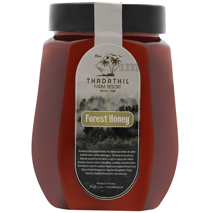 Thadathil Forest Honey is unprocessed, and naturally sourced from wild forest regions, retaining its natural enzymes, amino acids, vitamins, minerals, bee pollen, probiotics, and antioxidants. This single-ingredient product can be used as a natural sweetener in beverages, desserts, or daily wellness routines. With 345 kcal per 100 g, this honey may be used as a natural sweetener while offering various health benefits.