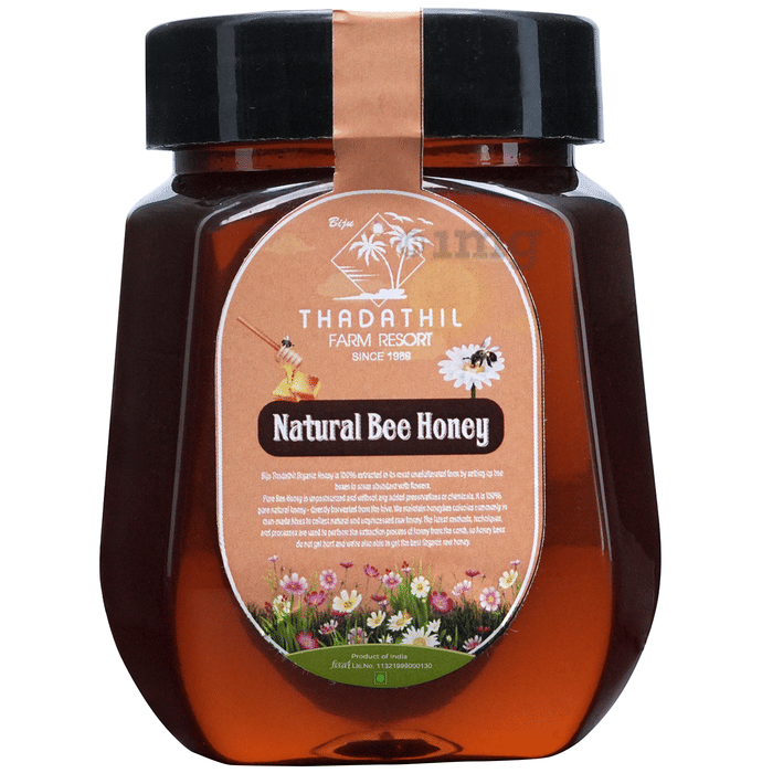 Thadathil Natural Bee Honey is extracted from bee hives and packed without added chemicals or preservatives. Rich in naturally occurring sugars like fructose and glucose, it can help provide a quick energy source during the day. It also contains trace enzymes, amino acids, and antioxidants that may help support general wellness. Its versatility makes it suitable for use in beverages, over breakfast dishes, or in skincare and haircare routines. The honey is raw and unprocessed and may retain traces of pollen or bee parts naturally present during collection.