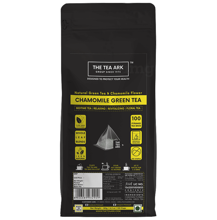 Information about The Tea Ark Chamomile Green Tea Bag (1.8gm Each) | Individually Wrapped Pyramid Tea Bags