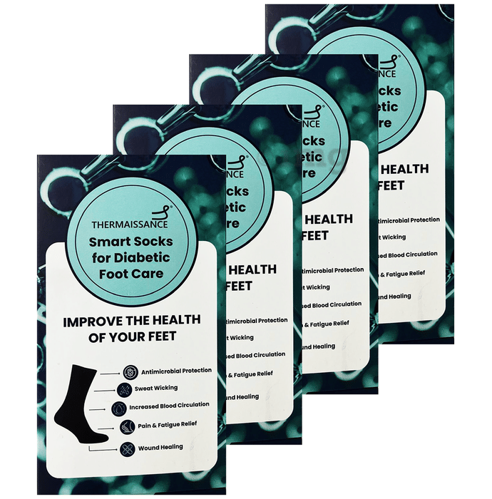Thermaissance Smart Socks for Diabetic Footcare (1 Pair Each) Light Brown and Olive Green are crafted using proprietary antimicrobial and thermoregulation technology to support foot hygiene and comfort. These socks are designed with advanced moisture-wicking and breathable materials to help keep feet dry. The cushioned sole and thermoregulated fabric offer added comfort and adaptability, especially during extended wear. Designed for durability and ease of care, they retain effectiveness even after multiple washes.