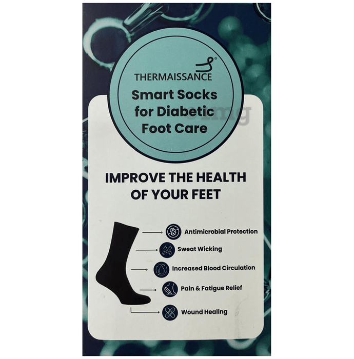 Thermaissance Smart Socks for Diabetic Footcare (1 Pair Each) Olive Green are crafted using proprietary antimicrobial and thermoregulation technology to support foot hygiene and comfort. These socks are designed with advanced moisture-wicking and breathable materials to help keep feet dry. The cushioned sole and thermoregulated fabric offer added comfort and adaptability, especially during extended wear. Designed for durability and ease of care, they retain effectiveness even after multiple washes.