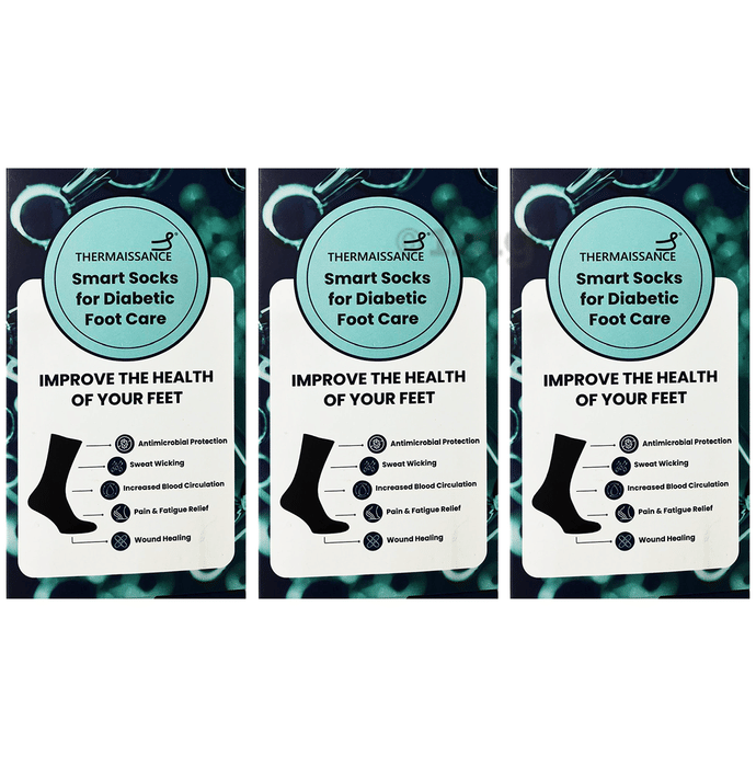 Thermaissance Smart Socks for Diabetic Footcare (1 Pair Each) Olive Green are crafted using proprietary antimicrobial and thermoregulation technology to support foot hygiene and comfort. These socks are designed with advanced moisture-wicking and breathable materials to help keep feet dry. The cushioned sole and thermoregulated fabric offer added comfort and adaptability, especially during extended wear. Designed for durability and ease of care, they retain effectiveness even after multiple washes.