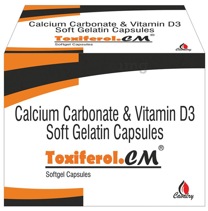 Toxiferol.CM Softgel Capsule has a mix of calcium carbonate and vitamin D3. Calcium plays a vital role in the body. It is necessary to normalise nerves, cells, muscles, and bones. If there is insufficient calcium in the blood, the body will take calcium from bones, weakening bones. Thus intake of calcium is necessary to keep the bones strong. Vitamin D helps the body absorb calcium and phosphorus. The right amounts of vitamin D, calcium, and phosphorus are important for building and keeping strong bones. It is beneficial for pregnant women after 12 weeks of pregnancy for bone formation and development of the baby.