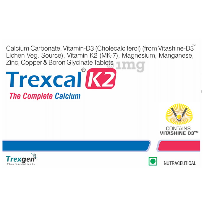 Trexgen Trexcal K2 Tablet provides maximum absorption and high elemental content to boost bone health. Trexcal-K2 is ideal for the elderly and adults as it works to keep bones healthy.