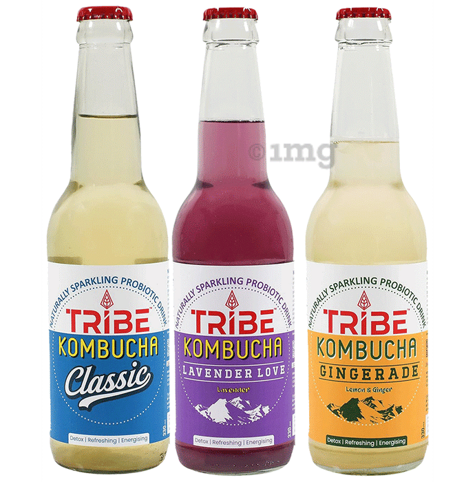 Tribe Kombucha Combo Pack of Naturally Sparkling Probiotic Drink Classic, Gingerade & Lavender Love (330ml Each)
