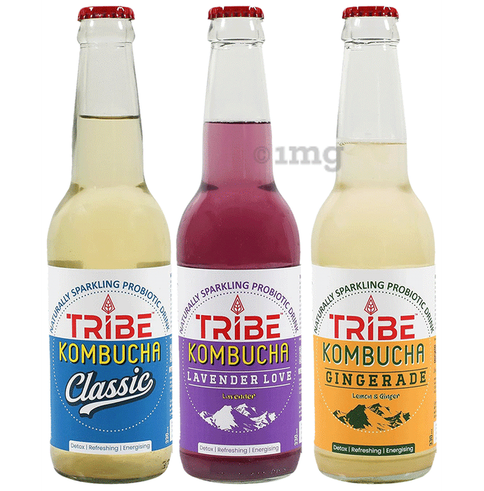 Tribe Kombucha Combo Pack of Naturally Sparkling Probiotic Drink Classic, Gingerade & Lavender Love (330ml Each)